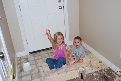 This is the entertainment that we have resorted to because of the freezing Idaho weather. I would like to thank Keisha for the idea but I am pretty sure that I don't rmember rice being all over "her" house.=) My kids are just crazy I guess! Its really funny to watch them play. What is one more mess to clean up right!